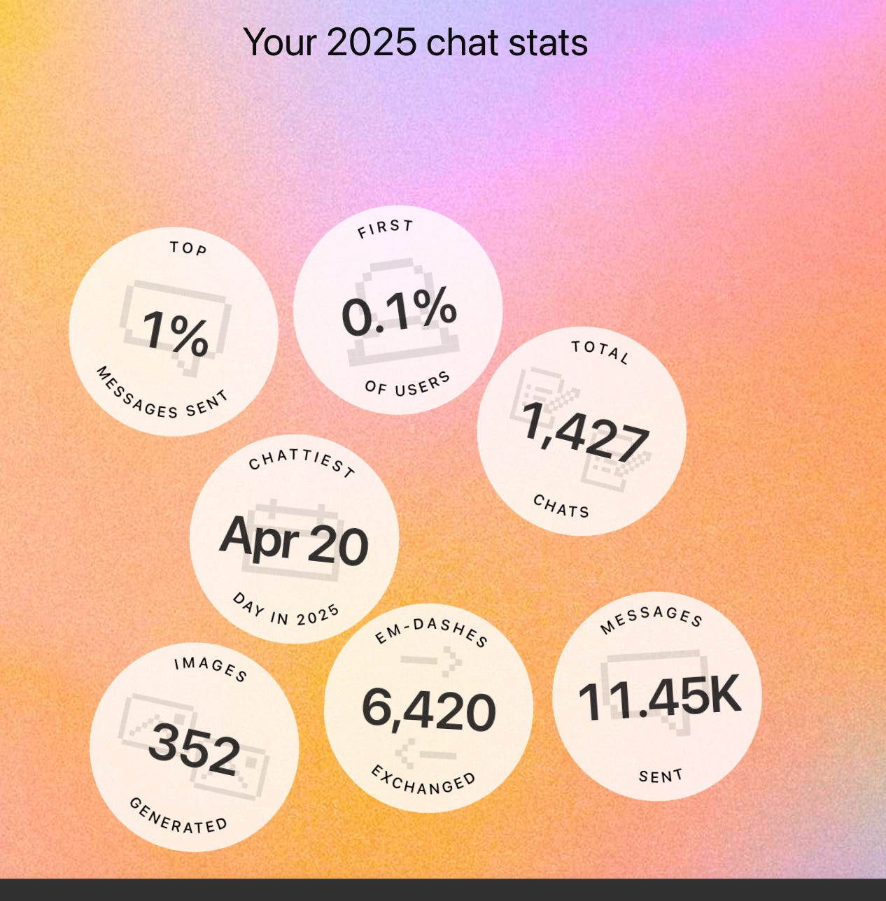 Here was my “Your Year with ChatGPT” 2025 stats: