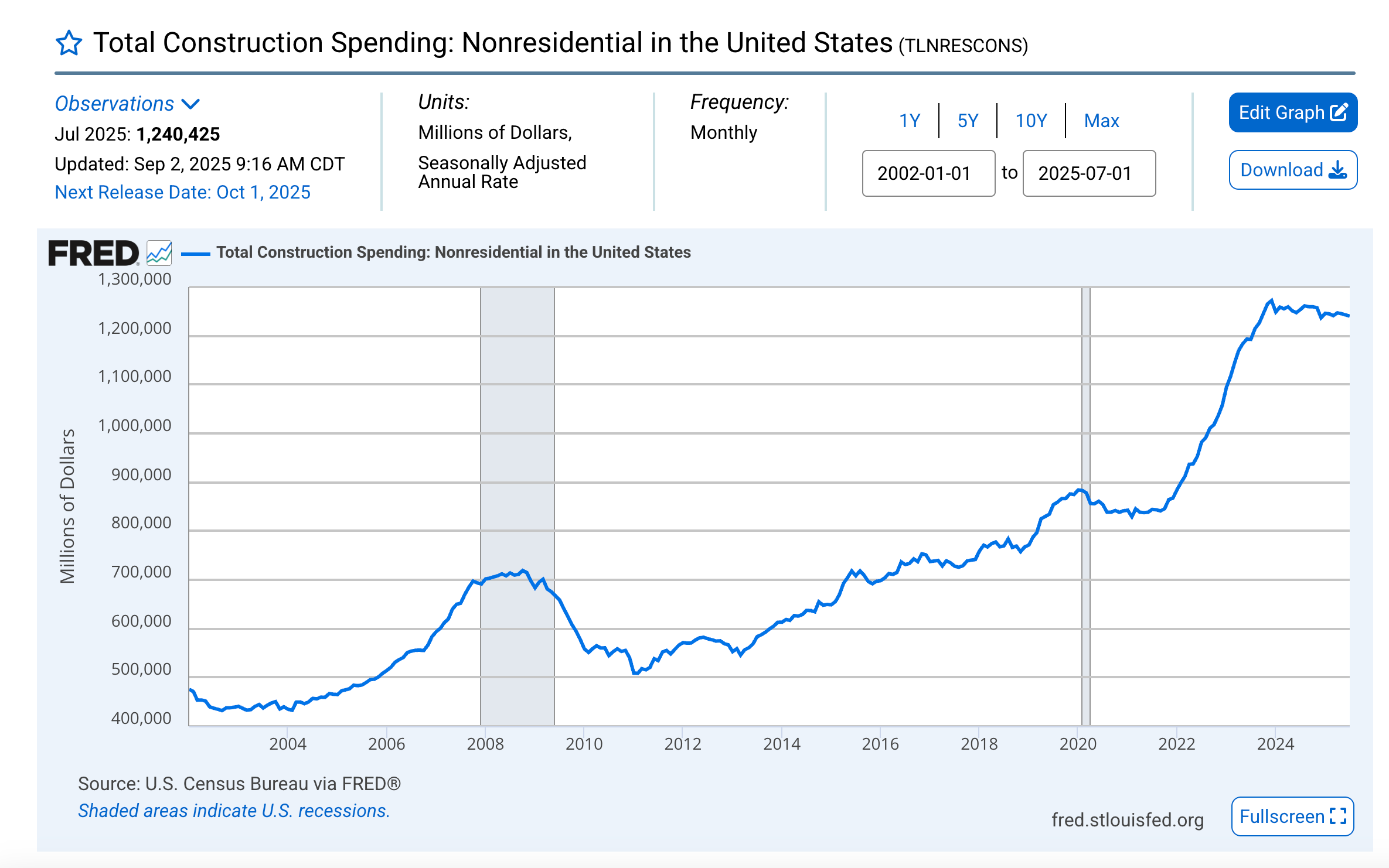 You can see non-residential construction spend has flatlined and if the future looks anything like 2008, we could see this spend go significantly lower: