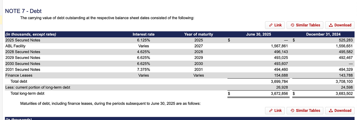 In short, while I don’t think the unit economics are as good as Triton / Textainer, I think they’re good and the 40%+ EBITDA margins, teens ROIC and FCF generation are real. One question shorts have brought up that needs to be addressed - will the company make it past debt maturities to realize these returns? Here is the current debt stack:
